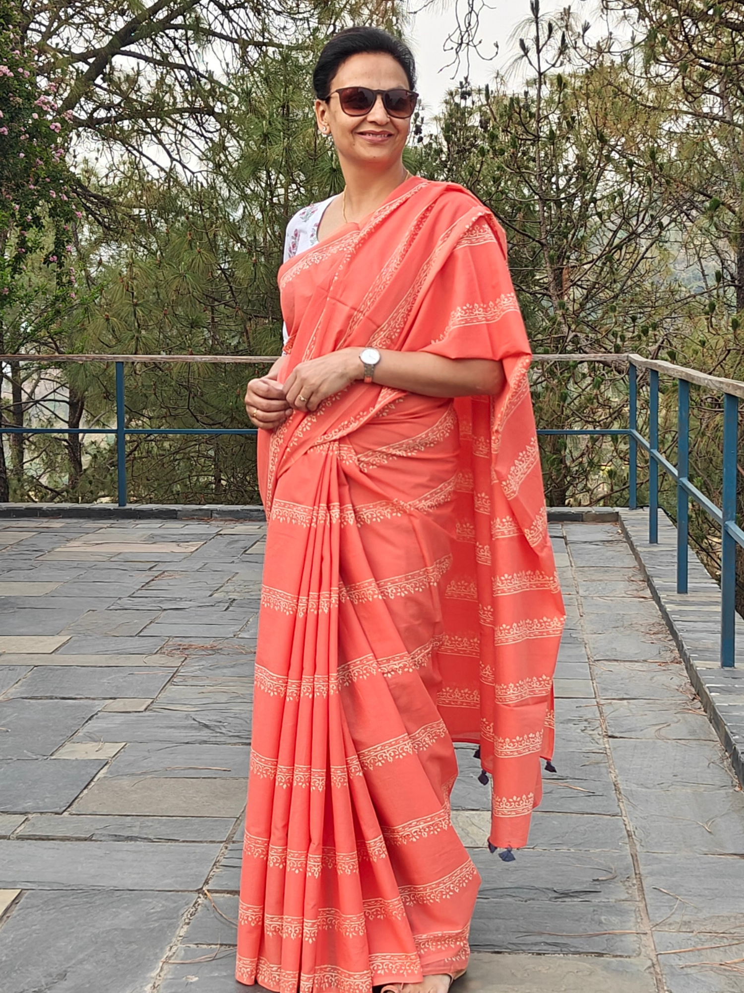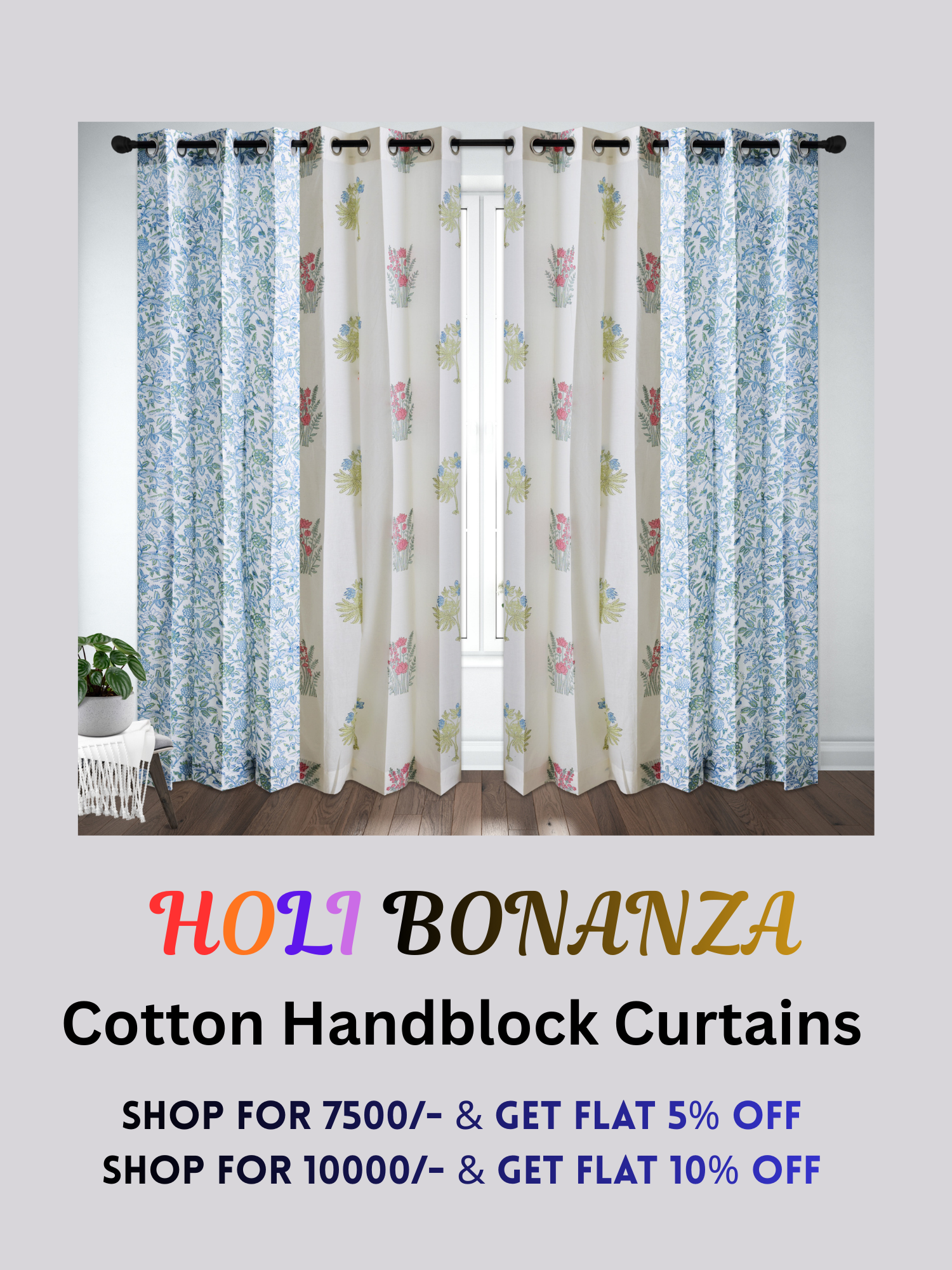 French Garden Cotton handblock Curtain (Pair of 2 Curtains)
