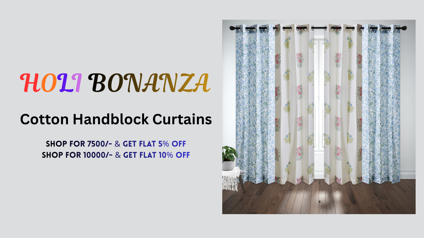 Teen Buta Cotton Handblock Curtain (Pair of 2 Curtains)