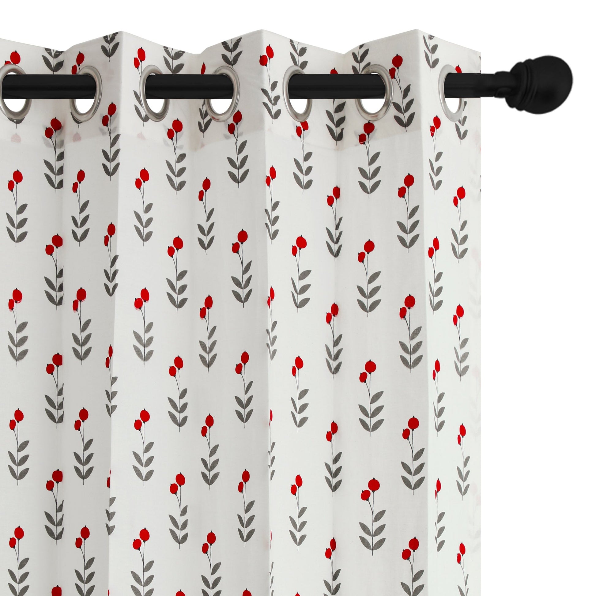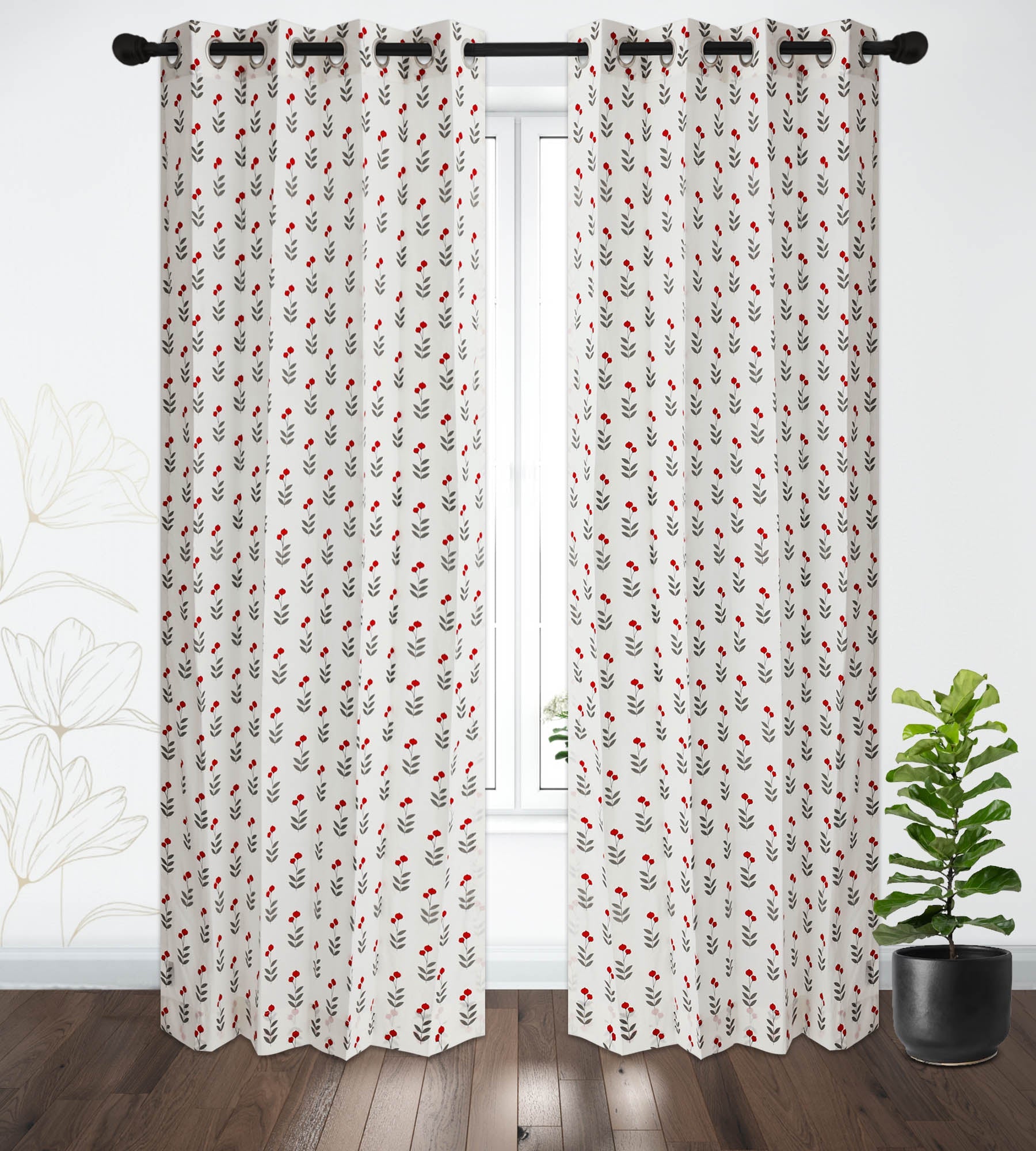 Cherry Print Cotton Handblock Curtain (Pair of 2 Curtains)