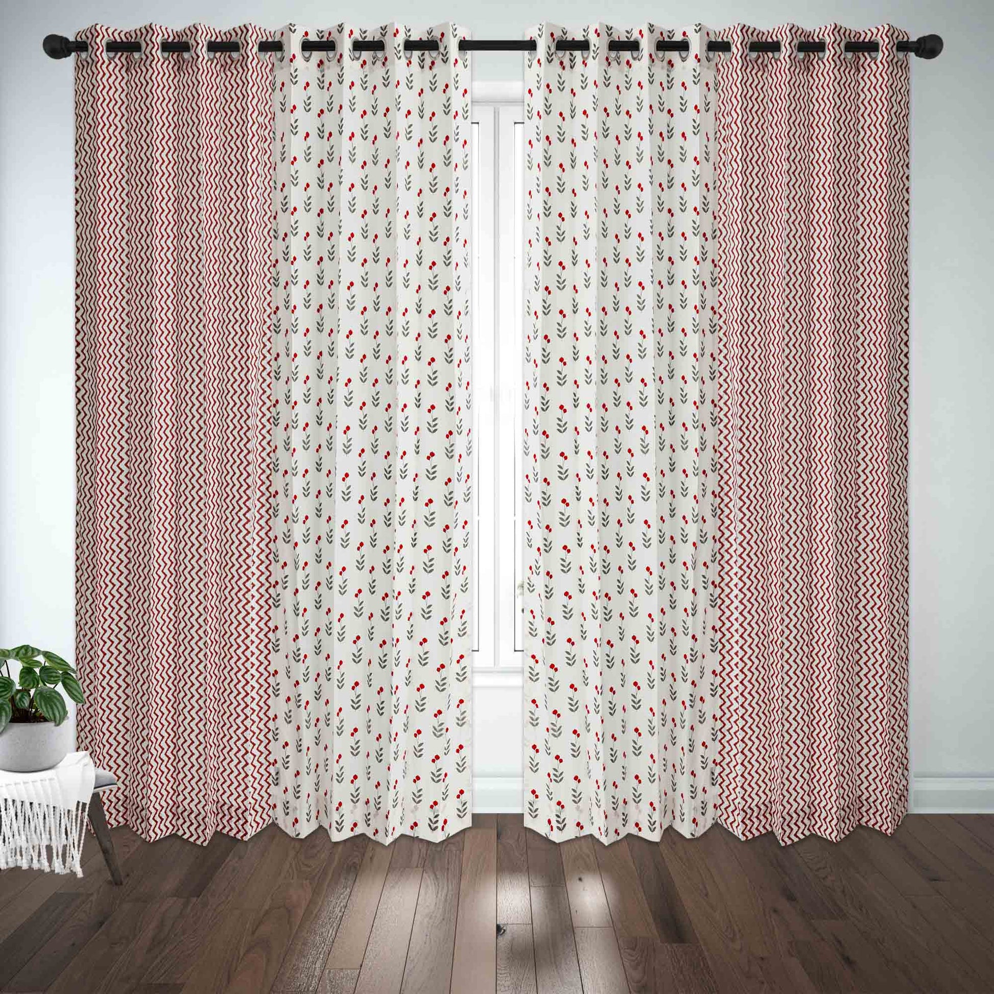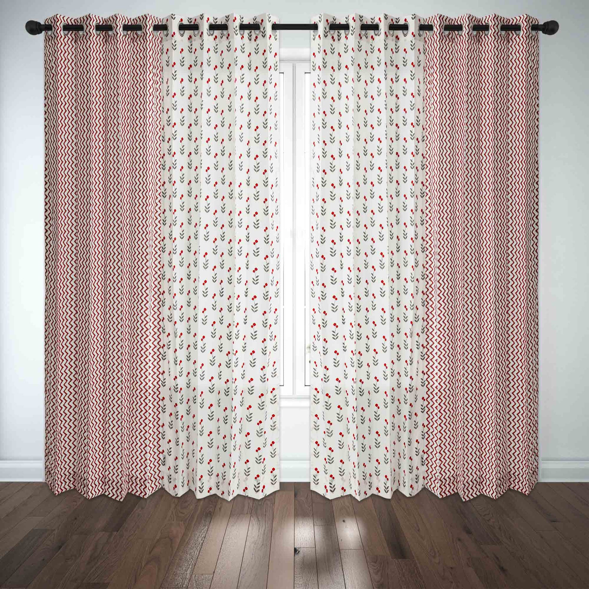 Cherry with Maroon Zigzag Cotton Handblock Combo (Set of 4 Curtains)