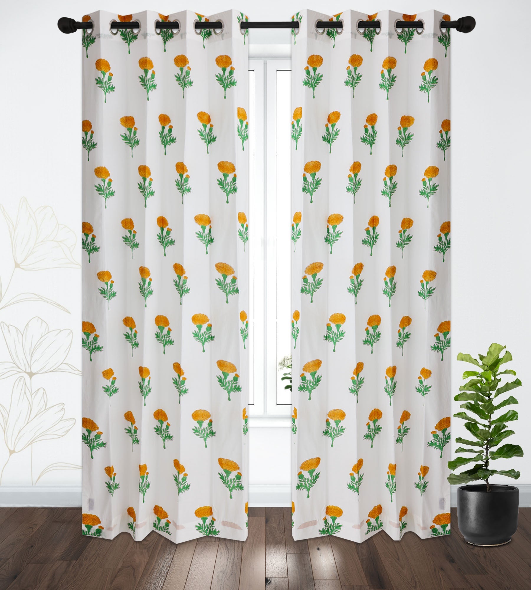Marigold Cotton Handblock Curtain (Pair of 2 Curtains)