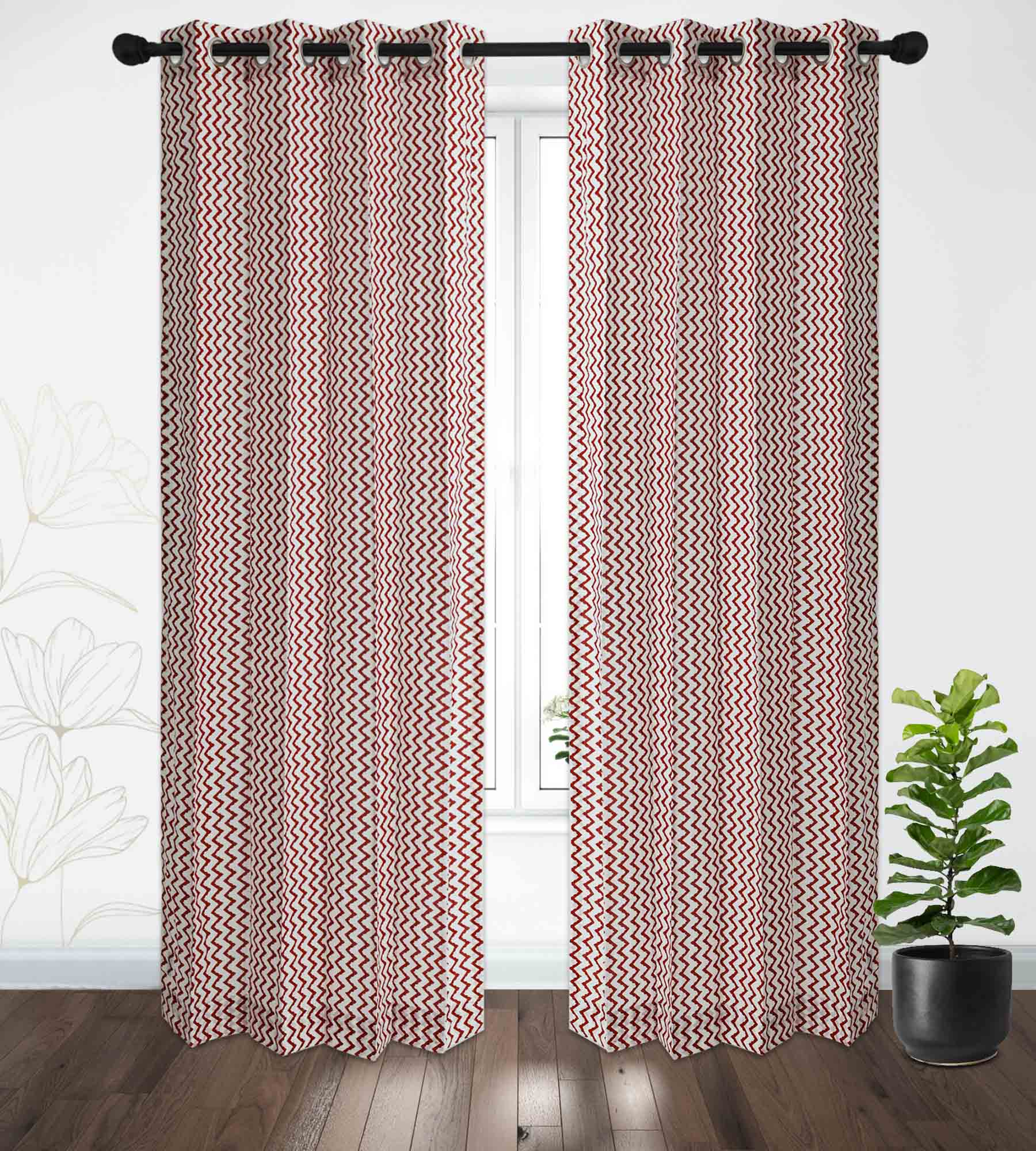 Maroon Zigzag Cotton Handblock Curtain (Pair of 2 Curtains)