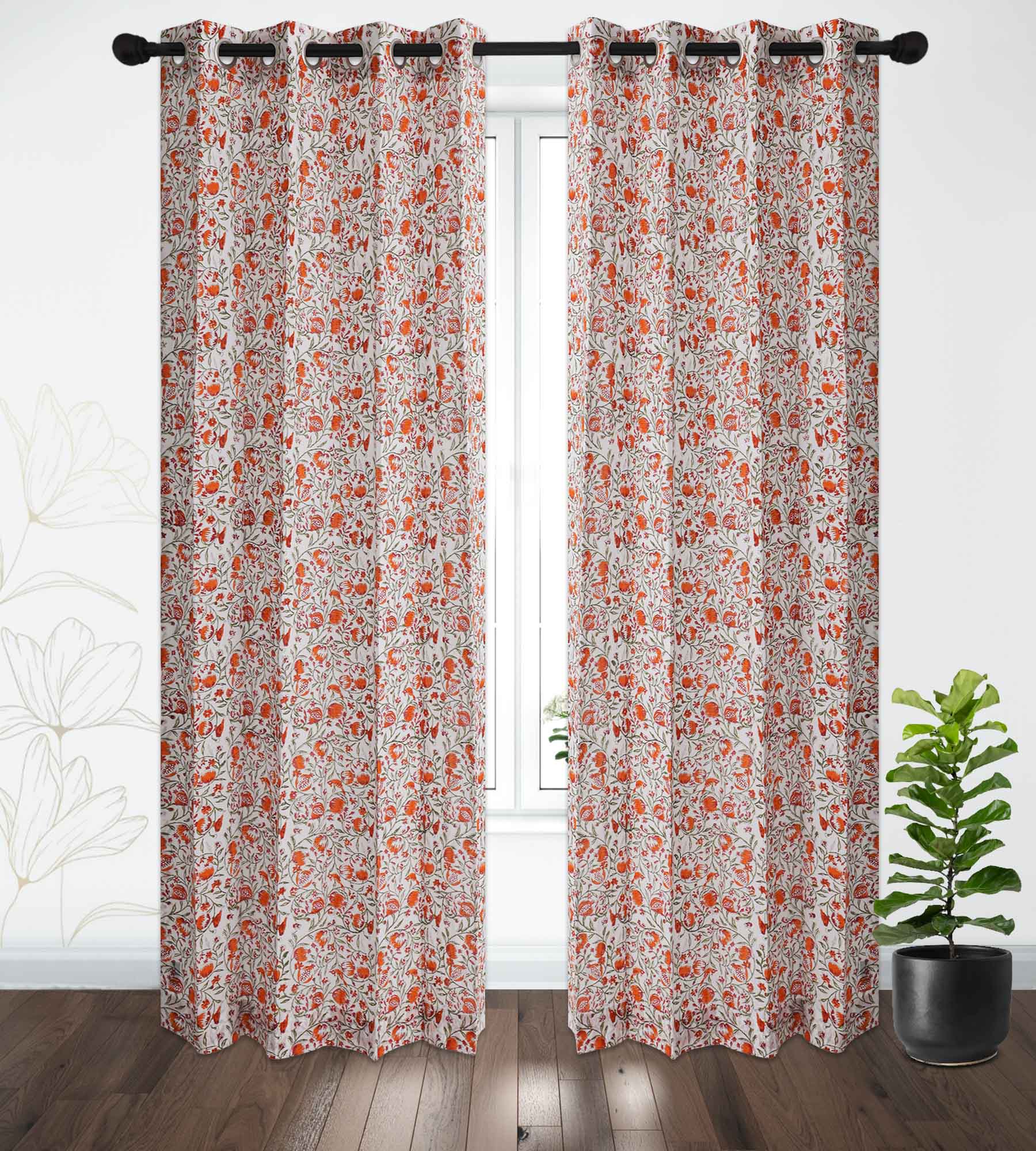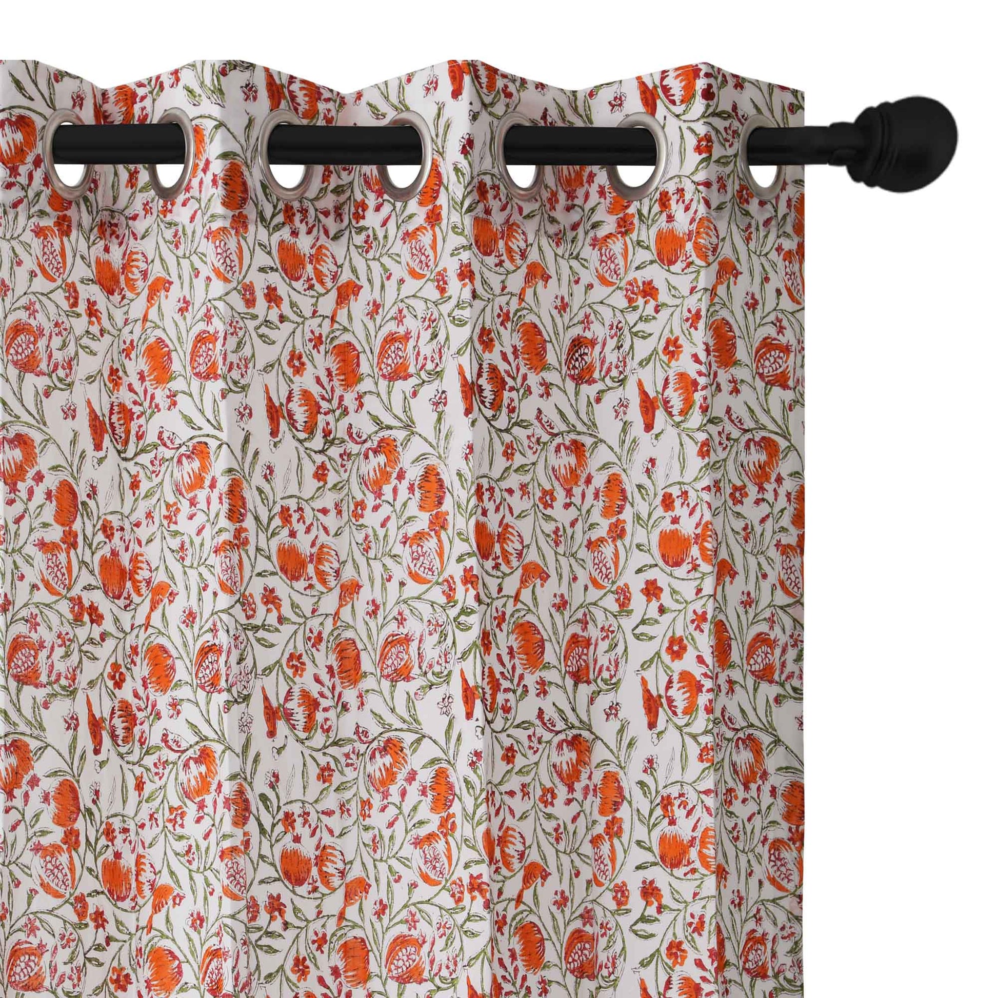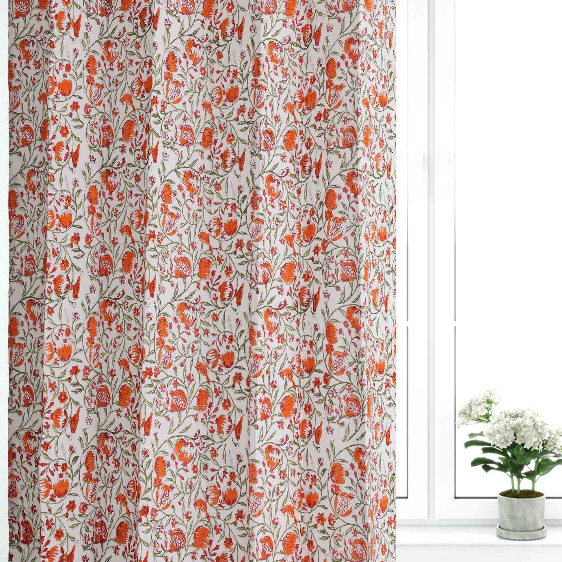 Orange Jaal Cotton Handblock Curtain (Pair of 2 Curtains)