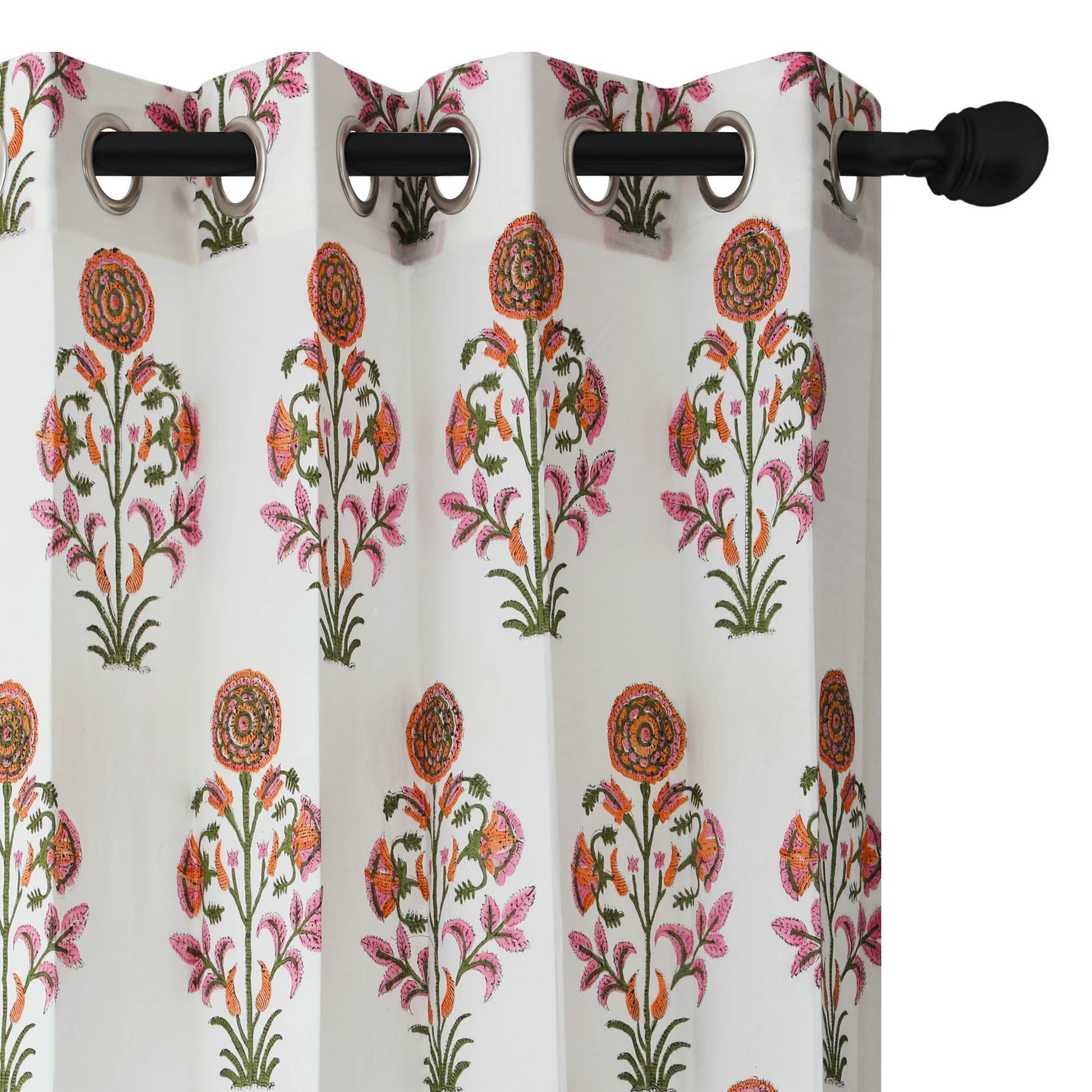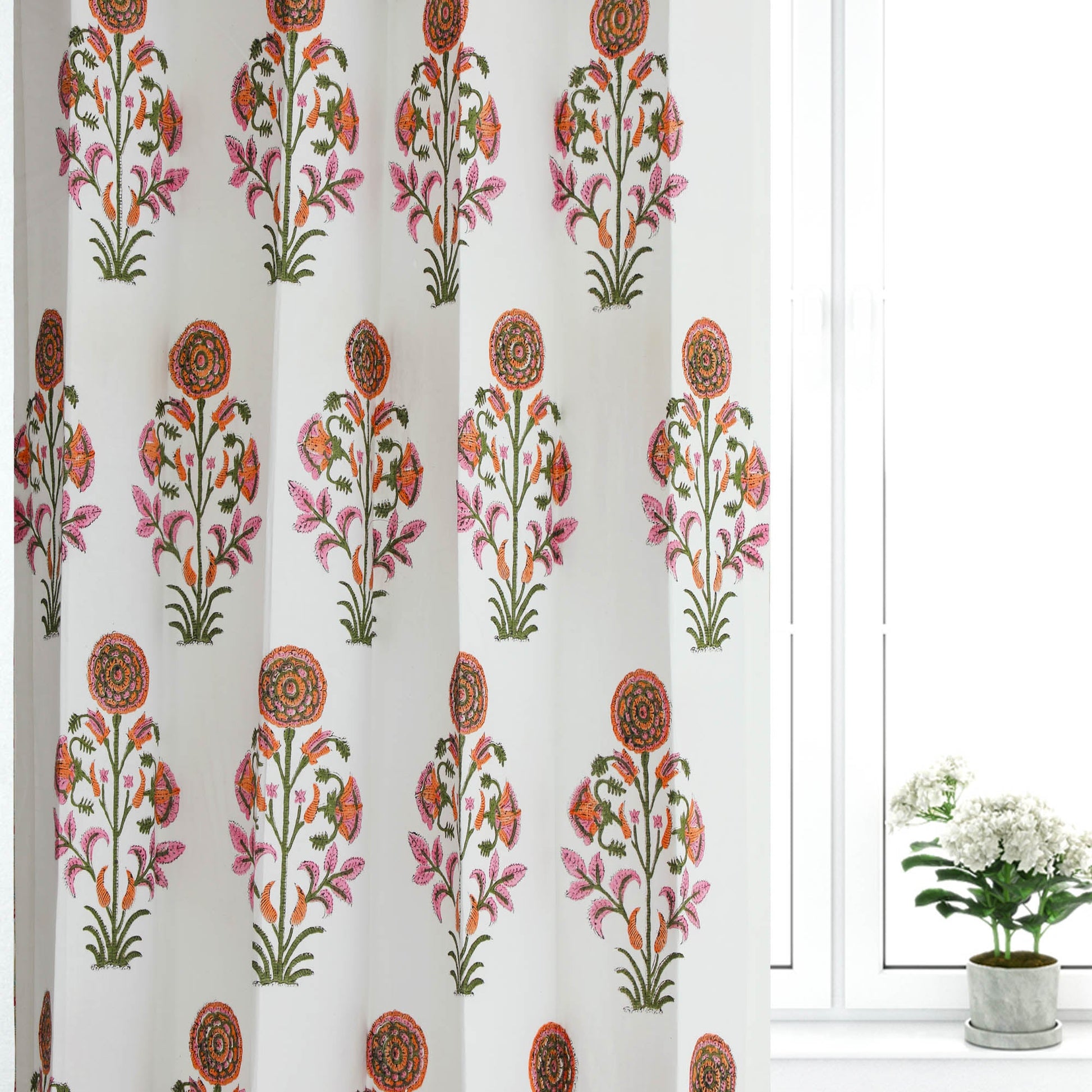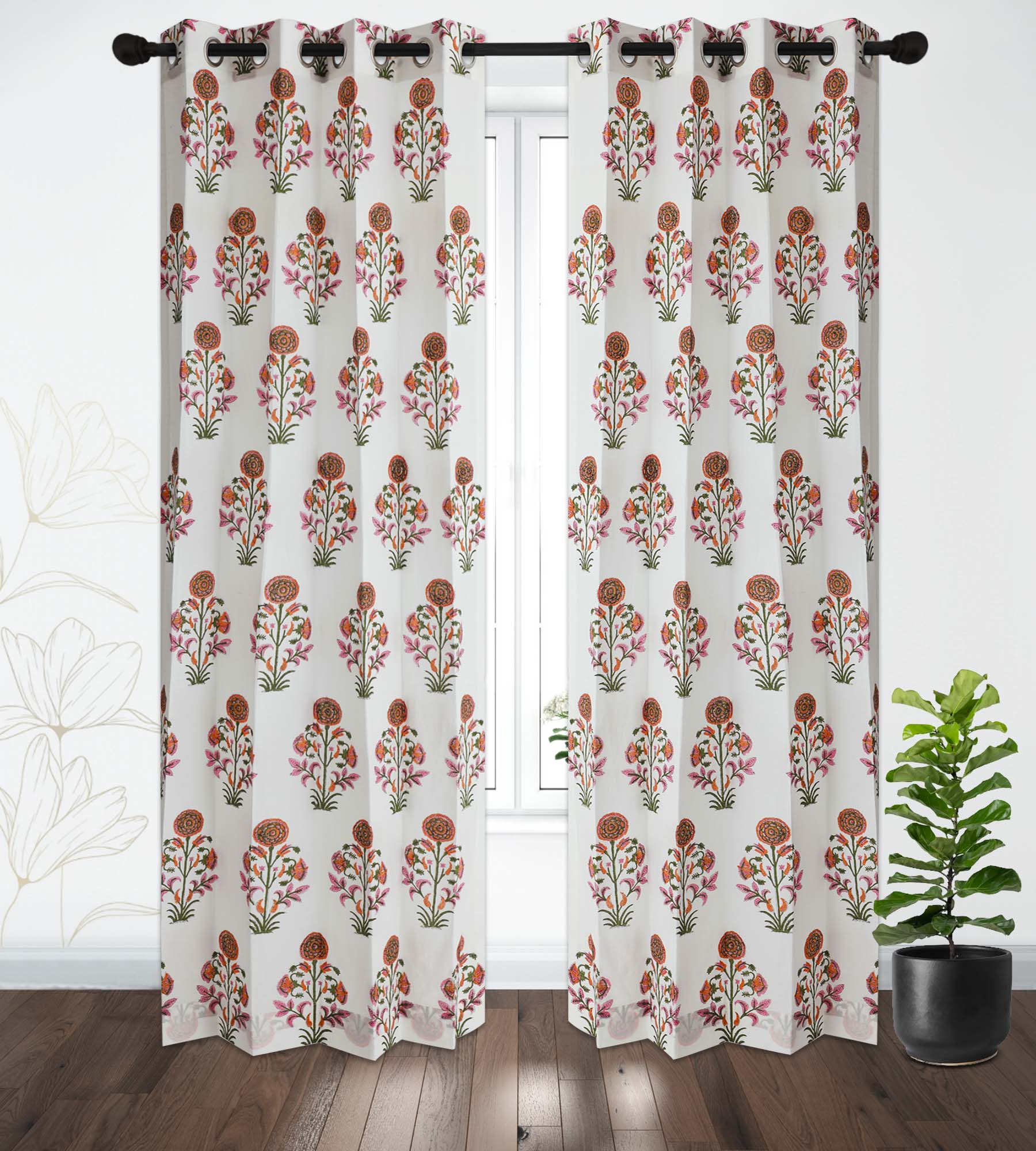 Orange Surajmukhi Cotton Handblock Curtain (Pair of 2 Curtains)