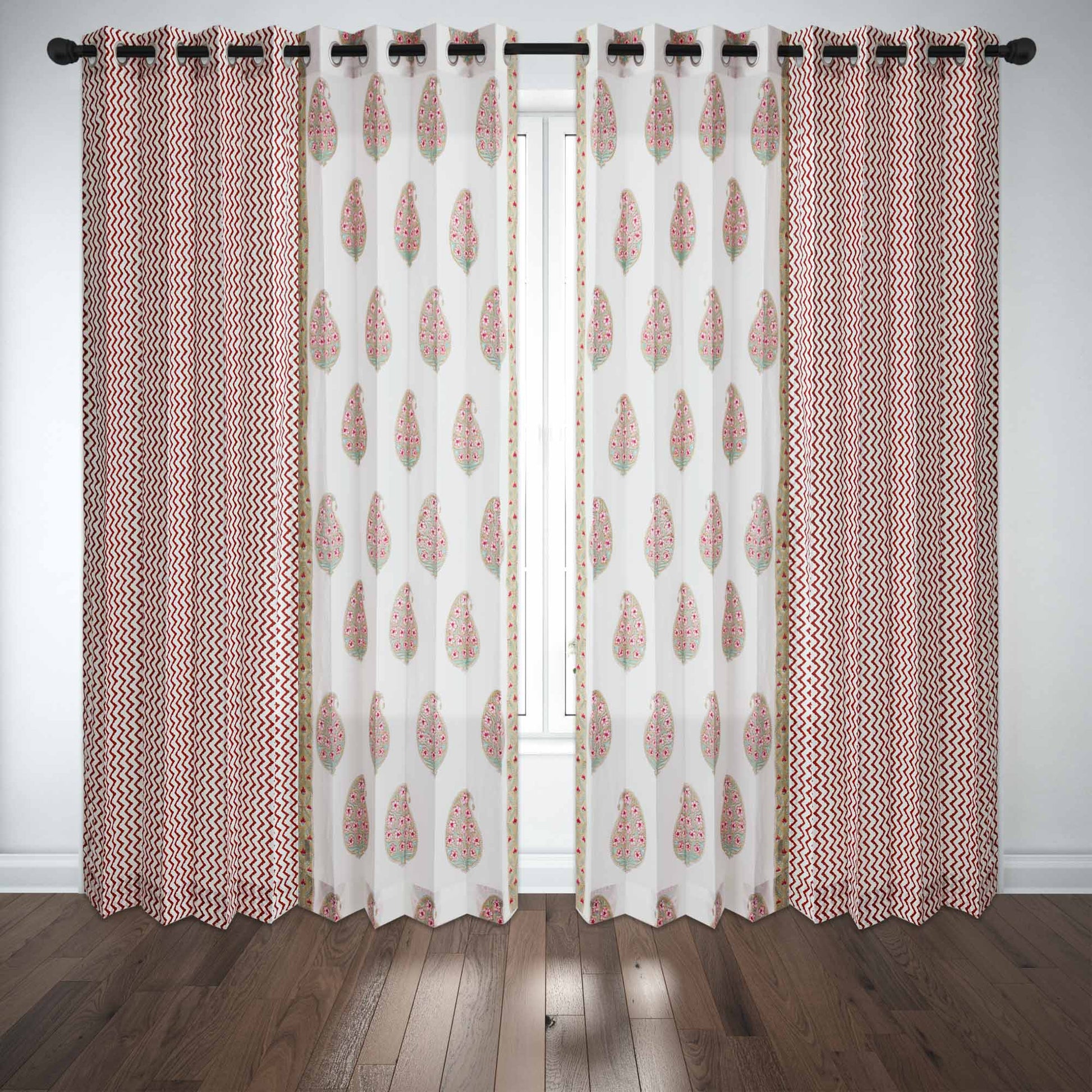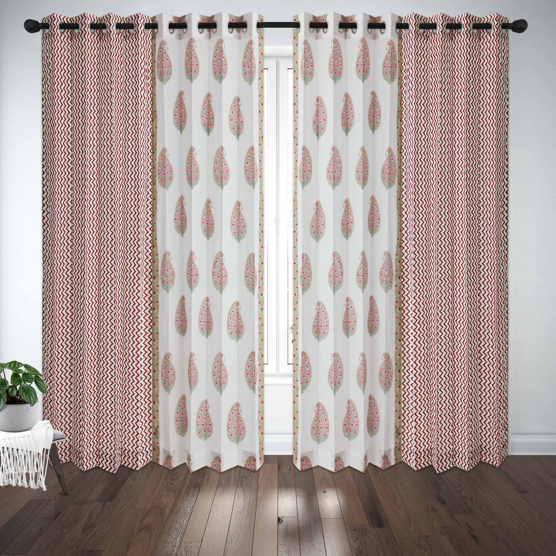 Paisley with Maroon Zigzag Cotton Handblock Combo (Set of 4 Curtains)