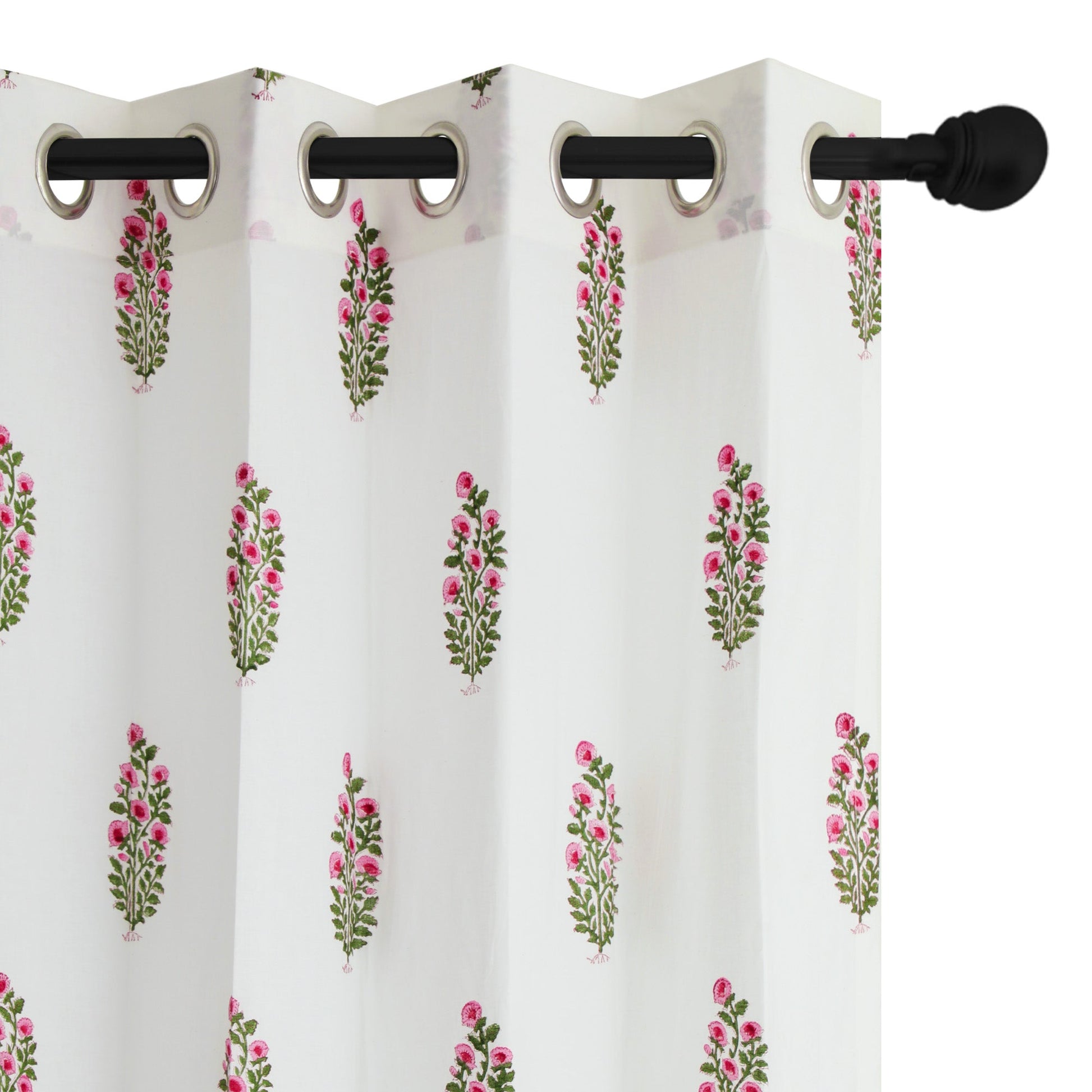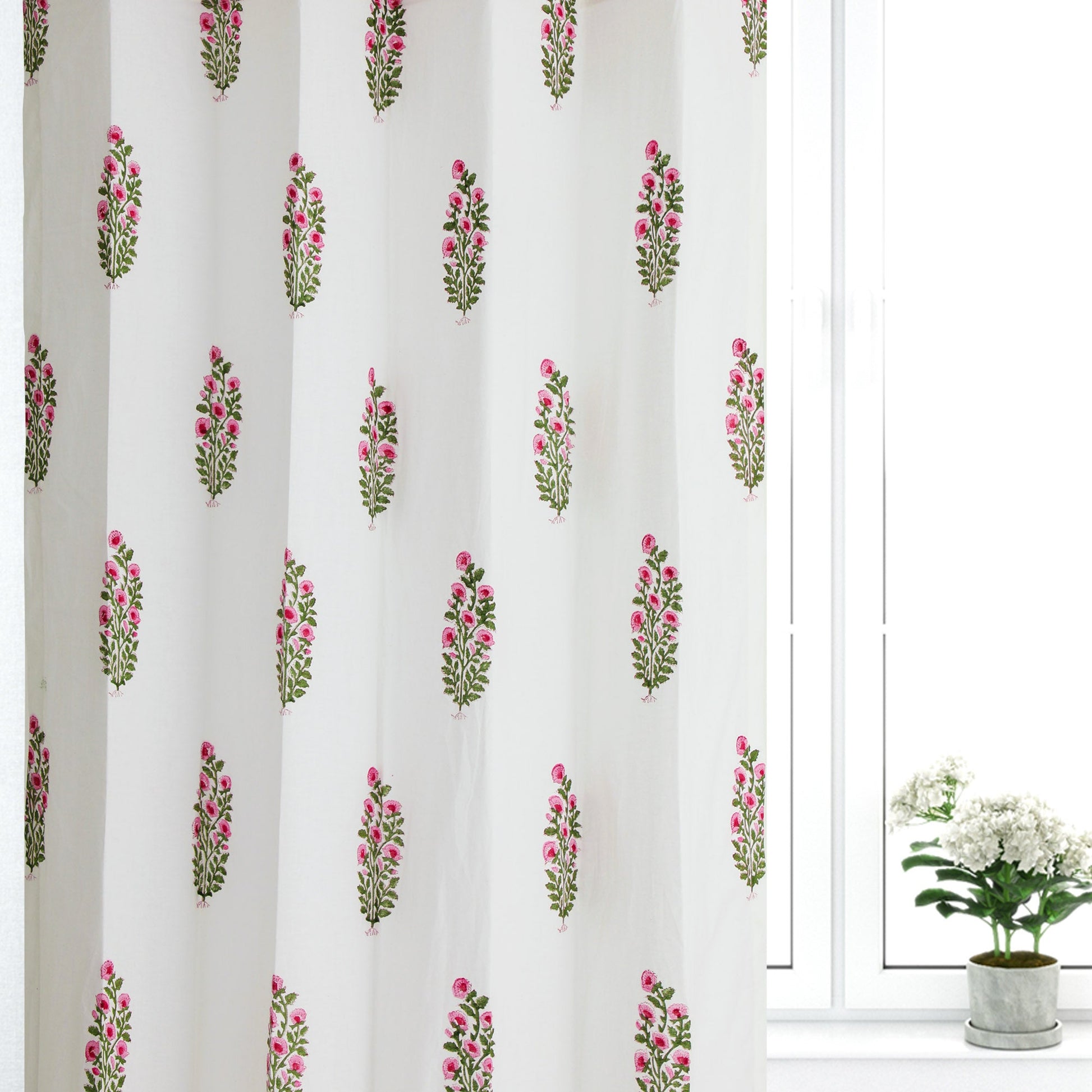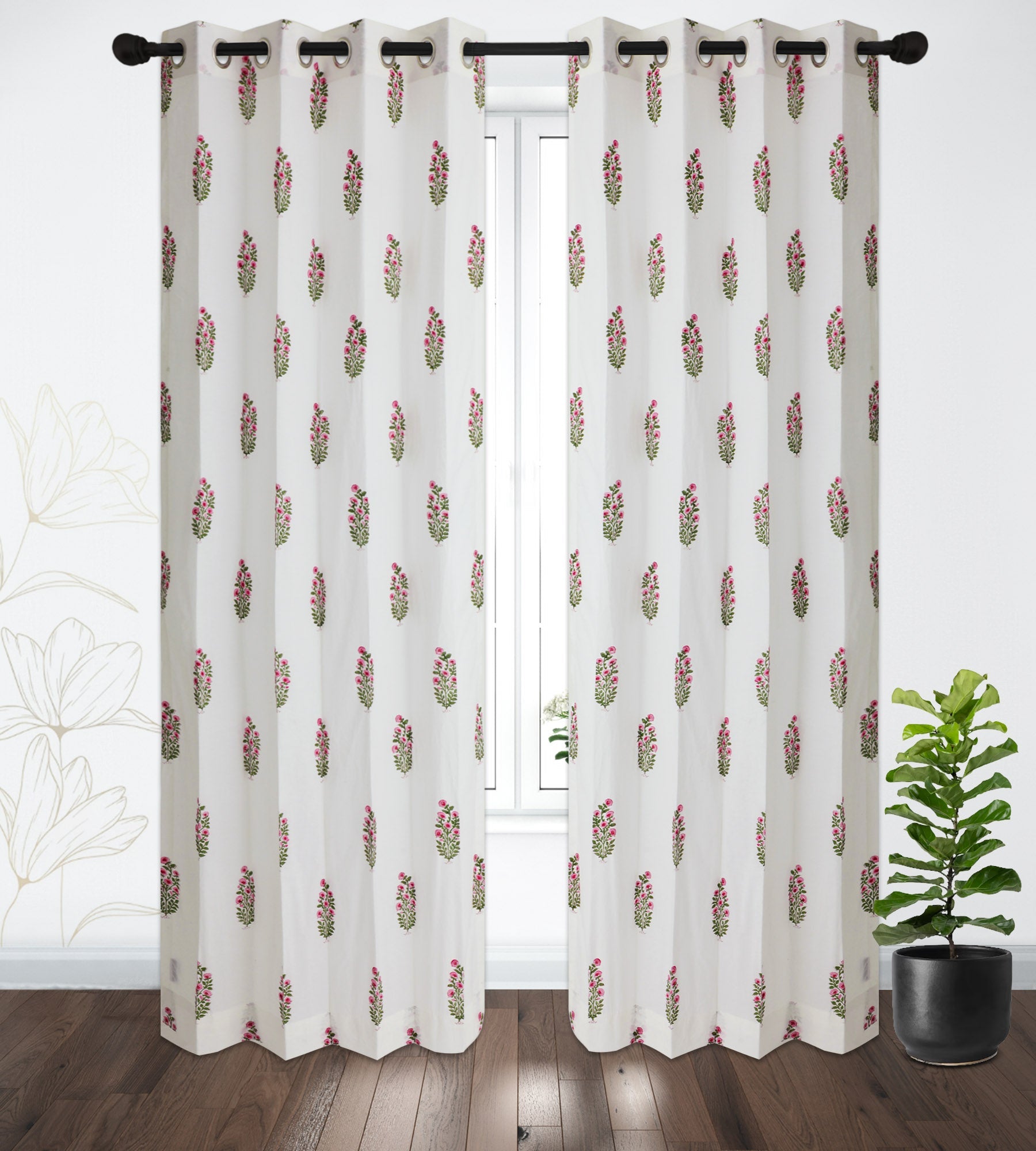 Pink and Green Bajra Cotton Handblock Curtain (Pair of 2 Curtains)