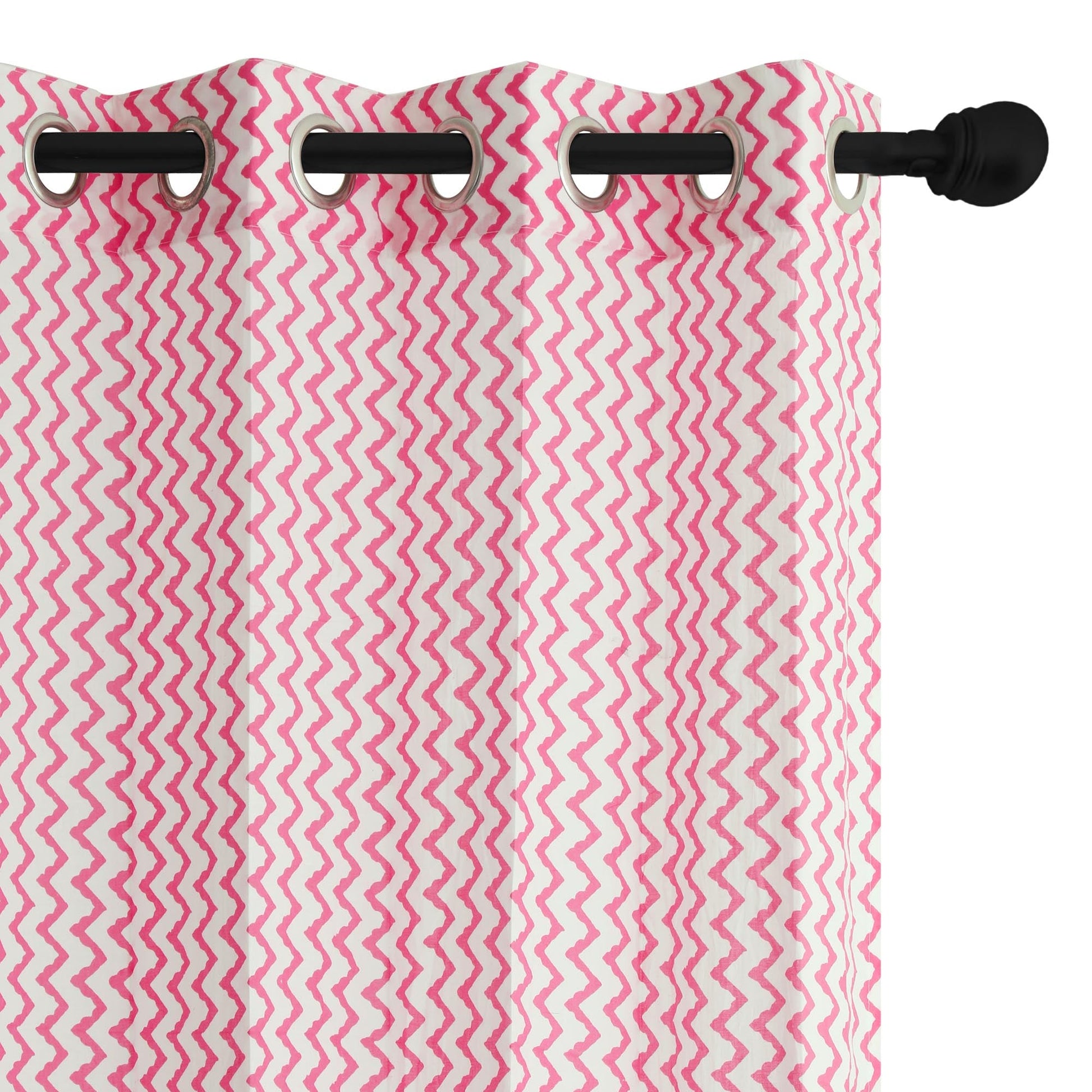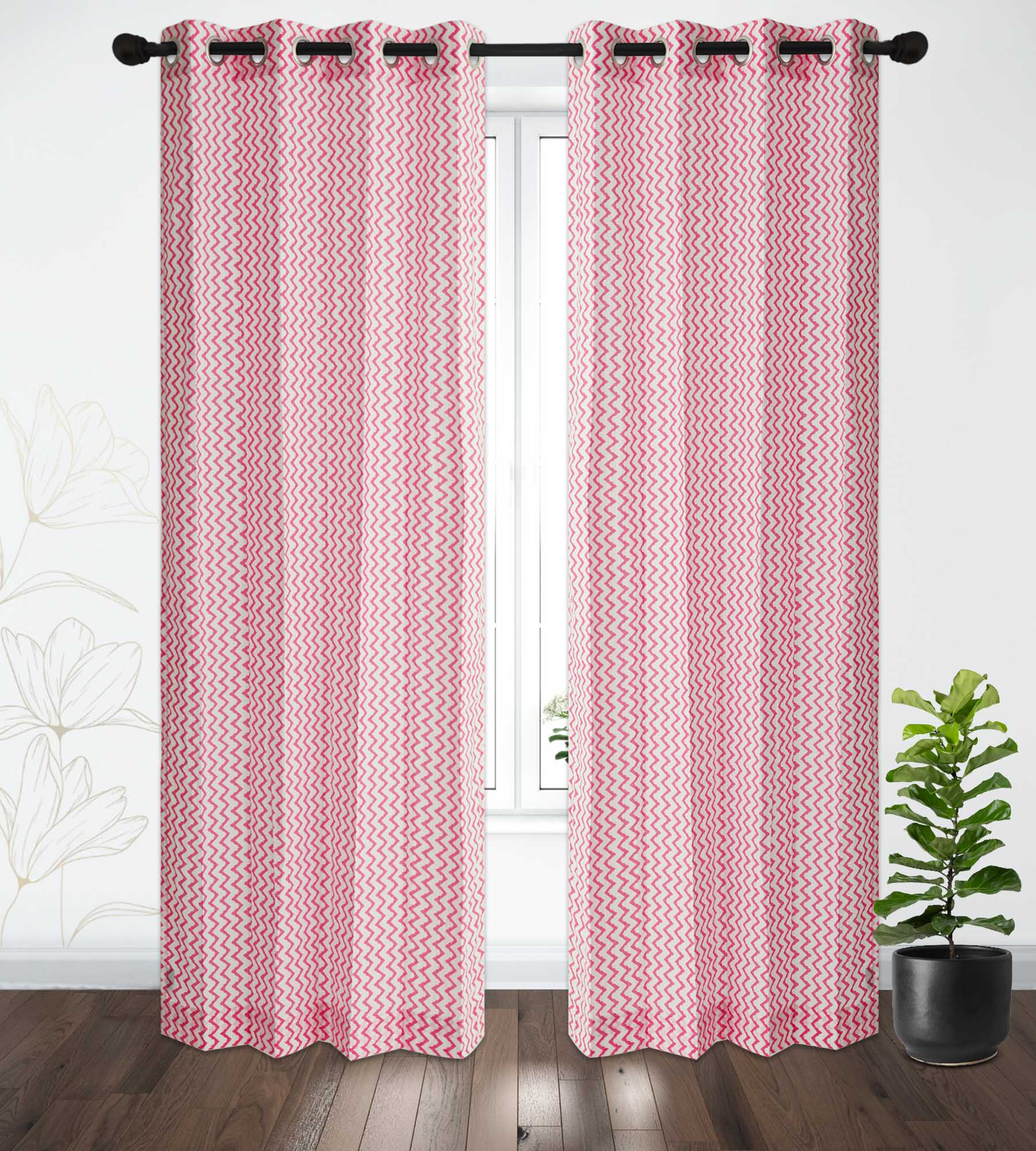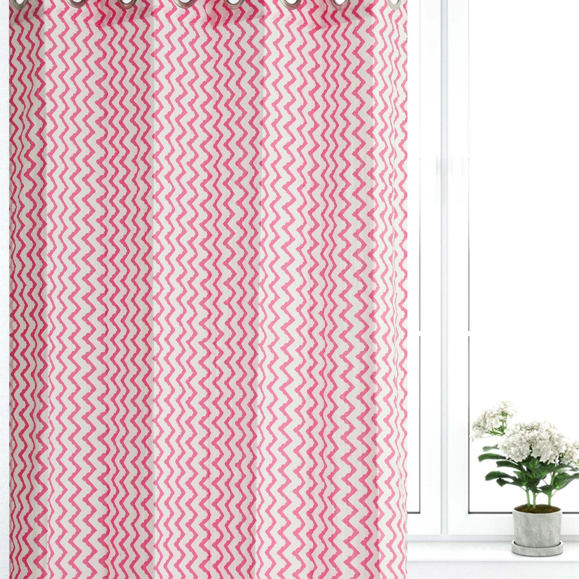 Pink Zigzag Cotton Handblock Curtain (Pair of 2 Curtains)