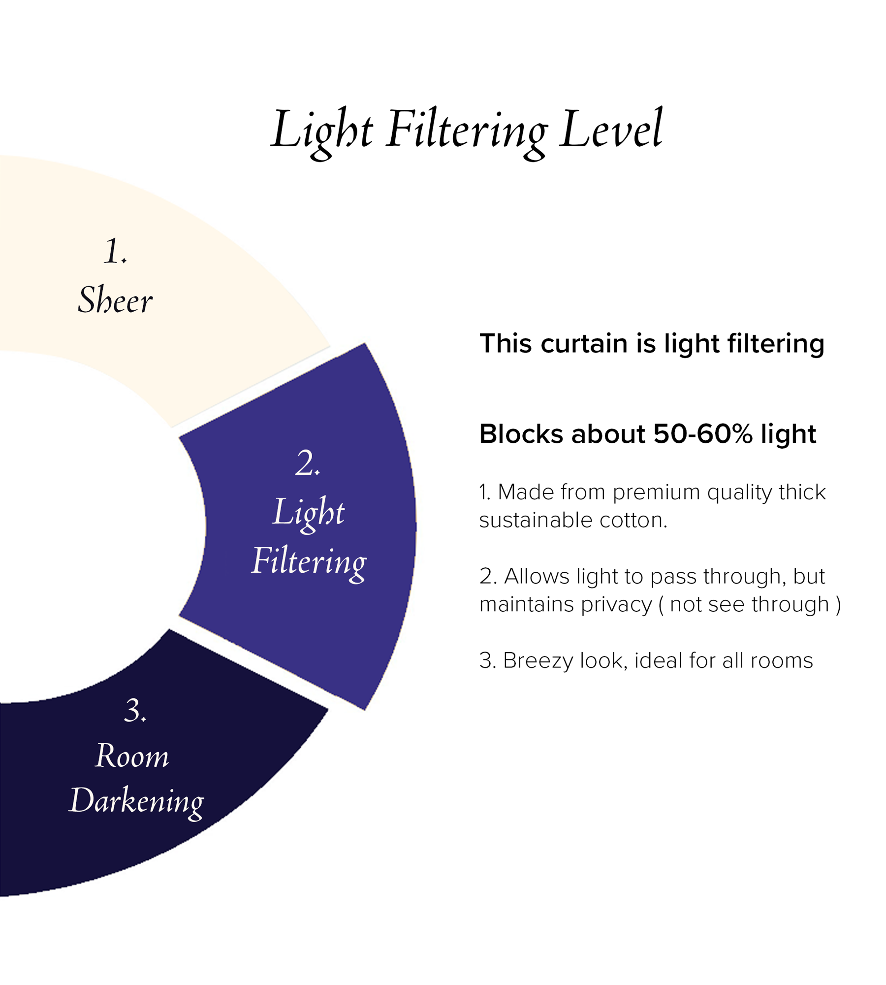 Colour fading may occur if the curtain is exposed to direct sunlight for a prolonged period. We put in our best efforts to represent the actual color of the product, but colours may vary slightly due to the photography, lighting, your screen’s resolution, and settings.